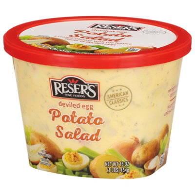 There are 230 calories in 12 cup of Resers Deviled Egg Potato Salad. An 8-pound carton is 769. Resers Mustard Potato Salad 6 RESERS AMERICAN CLASSICS.